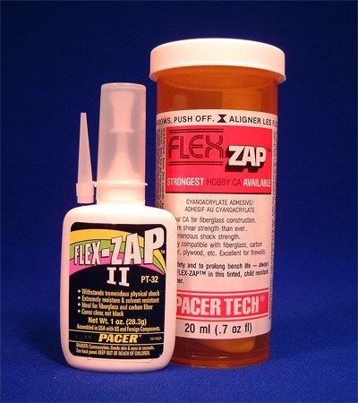 FLEX ZAP II Is a specialty CA adhesive developed for extreme environments. The superior shock and sheer strength makes FLEX ZAP II great for use on most hard surface materials. The moisture and solvent resistant characteristics of FLEX ZAP II make it the ideal glue forjet sea plane and boat modelers.Its ideal for installing plywood bulk heads to fiberglass fuselages and boat hulls. Use FLEX ZAP II to laminate carbon fiber when gluing hardwoods nylon parts and most plastics.It is the best glue to fasten rubber car tires to nylon and aluminum wheels.This is a specialty glue used in all aspects of modeling but has many industrial uses.